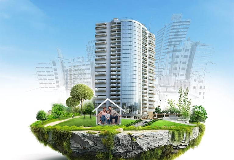 A panoramic view of a city skyline at sunset, highlighting urban living.